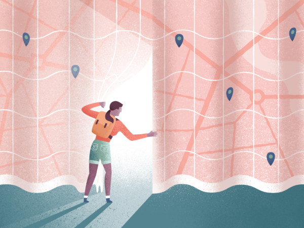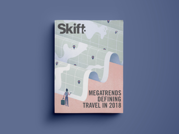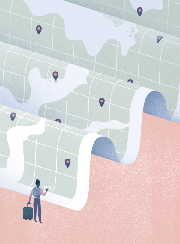 Cover illustration for the Skift 2018 report on trends within the travel industry, centered on the theme of “Turbulence.” Additionally, a half-page illustration accompanied the editor’s letter.